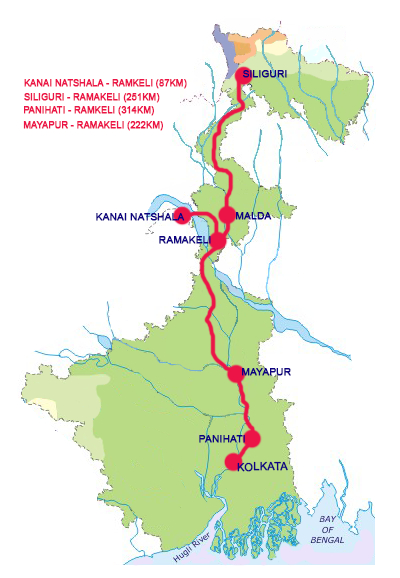 From Kolkata by road, Mayapur is 4 hours, and Ramakeli a further 5 hours.